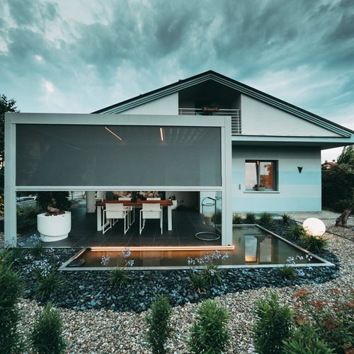 Onder de nieuwste design trends, is outdoor living meer en meer aanwezig. De international trends zetten in op flexibele ruimtes, die zich aan kunnen passen aan de behoeften van wie er woont. De verbondenheid met de natuur, de mogelijkheid om licht en privacy aan te passen, het zoeken naar persoonlijke oplossingen zijn de nieuwe must-haves. De zijafsluitingen van Corradi voldoen aan al deze behoeften en bieden evolutionaire systemen die de pergola in een oase van welzijn transformeren, waar de grens tussen binnen en buiten vervaagt.De verticale screens van Corradi: de vrijheid om licht en privacy te regelen