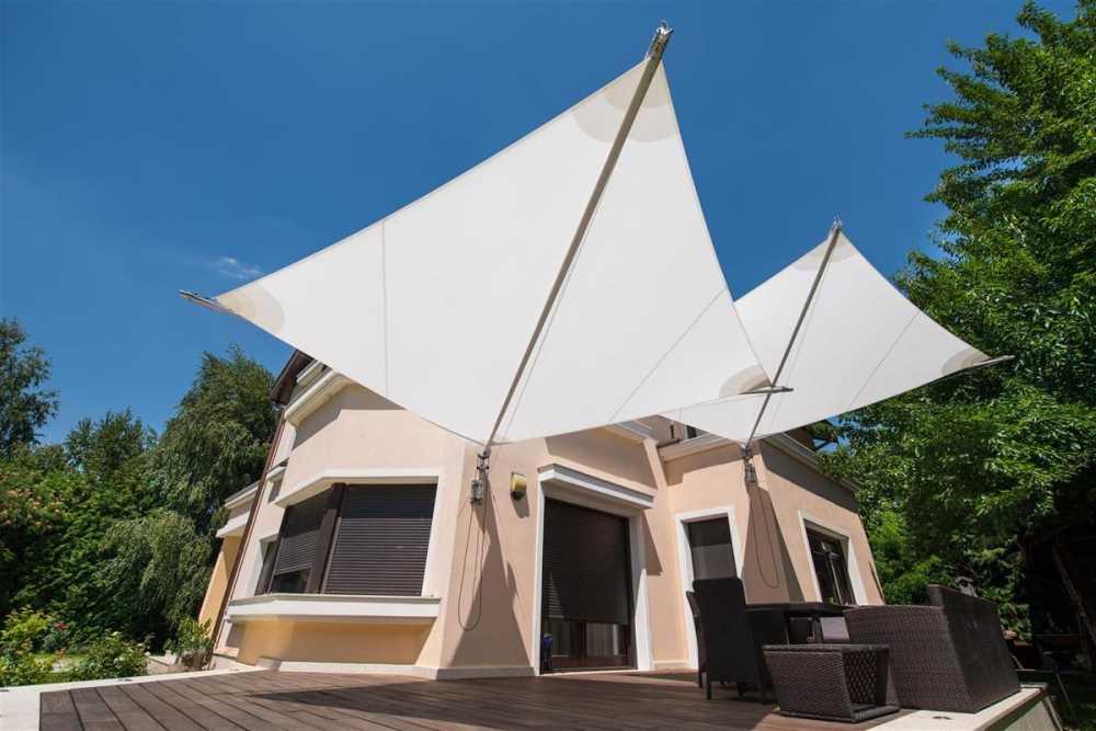 Una volta aperta, la vela si orienta di 360° nella versione autoportante e di 90° in quella addossata a parete: ideale per chi ama seguire il sole lasciandosi circondare dal vento e dalle sue imprevedibili traiettorie. Per chiuderla, invece, basta avvolgerla in pochi secondi manualmente o tramite radiocomando: in quest’ultima configurazione, la vela è dotata inoltre di anemometro per la chiusura automatica in caso di vento forte. A noi piace definirla “tecnologia intelligente”, la stessa con cui abbiamo progettato il telo di serie. Sia nella versione freestanding che in quella a muro, infatti, il telo è realizzato in Dacron®, un poliestere intrecciato di derivazione nautica (sottoposto a trattamento di protezione dai raggi UV) con taglio a ferzi orizzontali, per una pulizia estrema delle linee, o a ferzi radiali per performance senza paragoni.