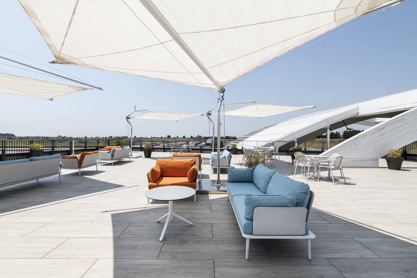 Struttura, materiali, finiture, accorgimenti: mondo nautico e Defense sono un tutt’uno. Oltre la vela e i suoi materiali, ogni dettaglio di questa Sun Sail ricorda la barca: dai moschetti in metallo, al palo portante (quasi un albero maestro piegato dall’aria o dal flusso dell’acqua), fino al suo sistema di sostegno. Non nodi e corde, ma un ingegnoso impianto di sottili cavi in tensione che, funzionale per la stabilità di tutta la struttura, la rende allo stesso tempo flessibile e adattabile a qualunque contesto.