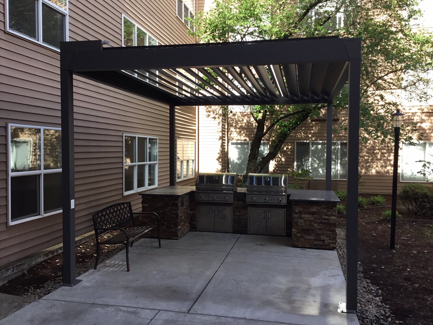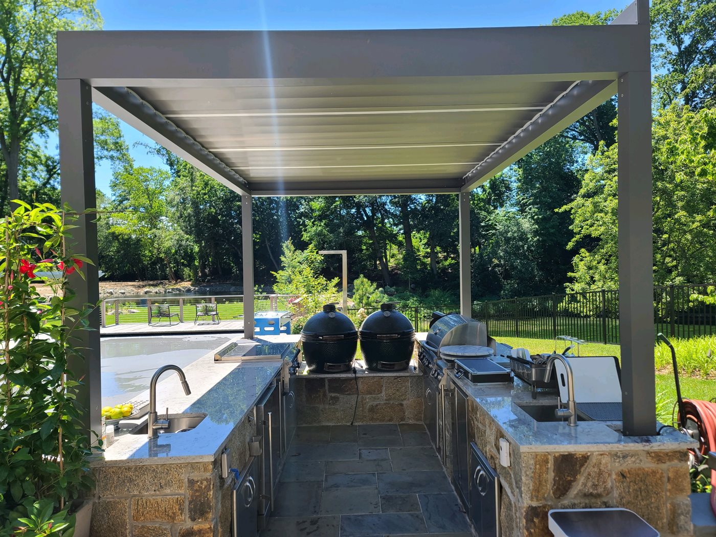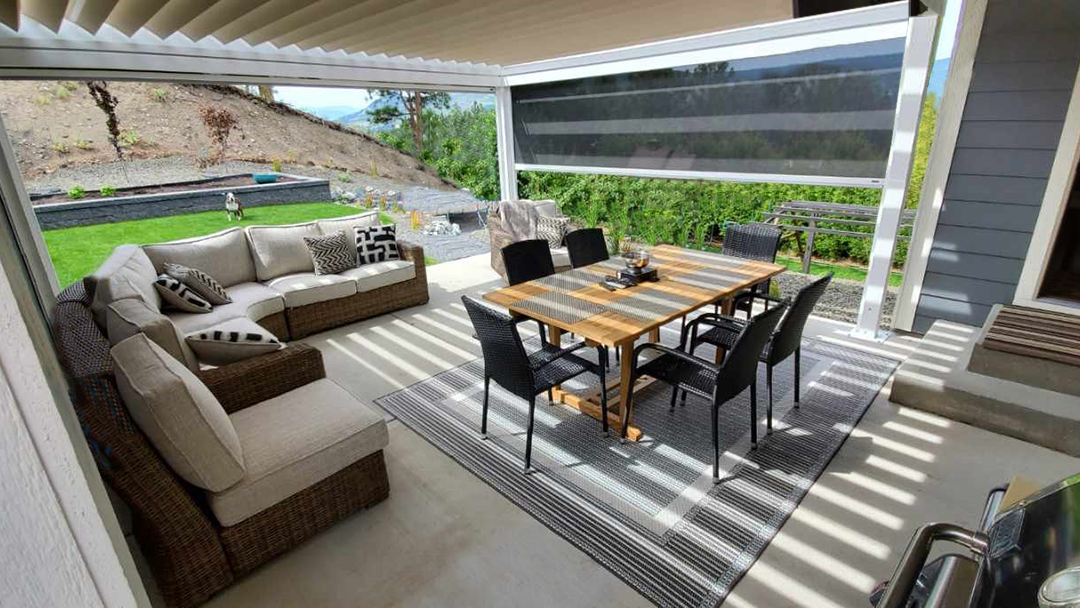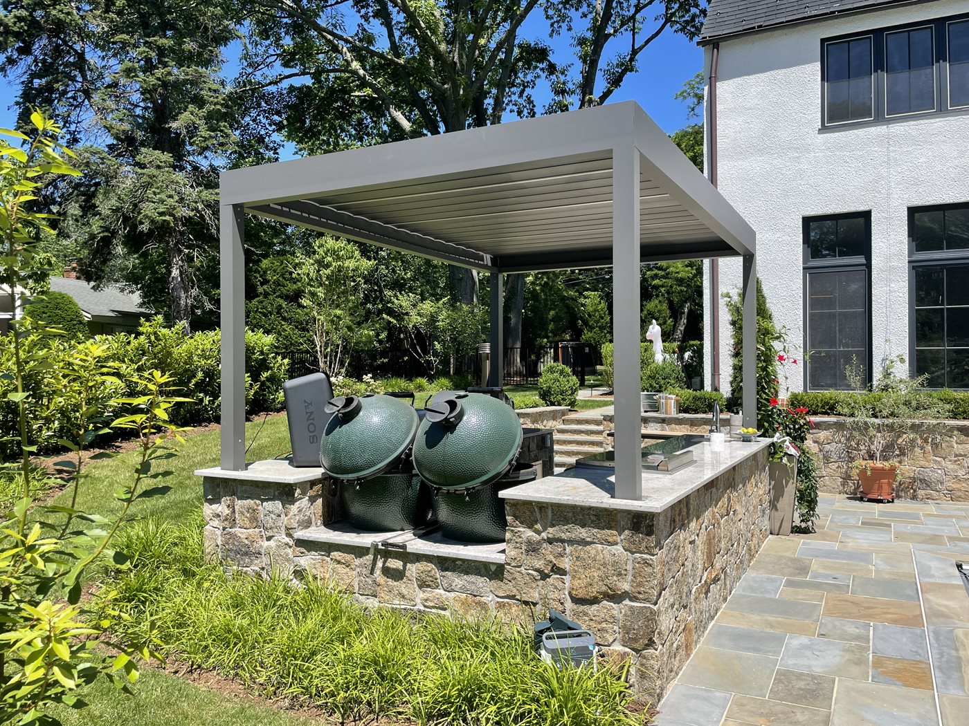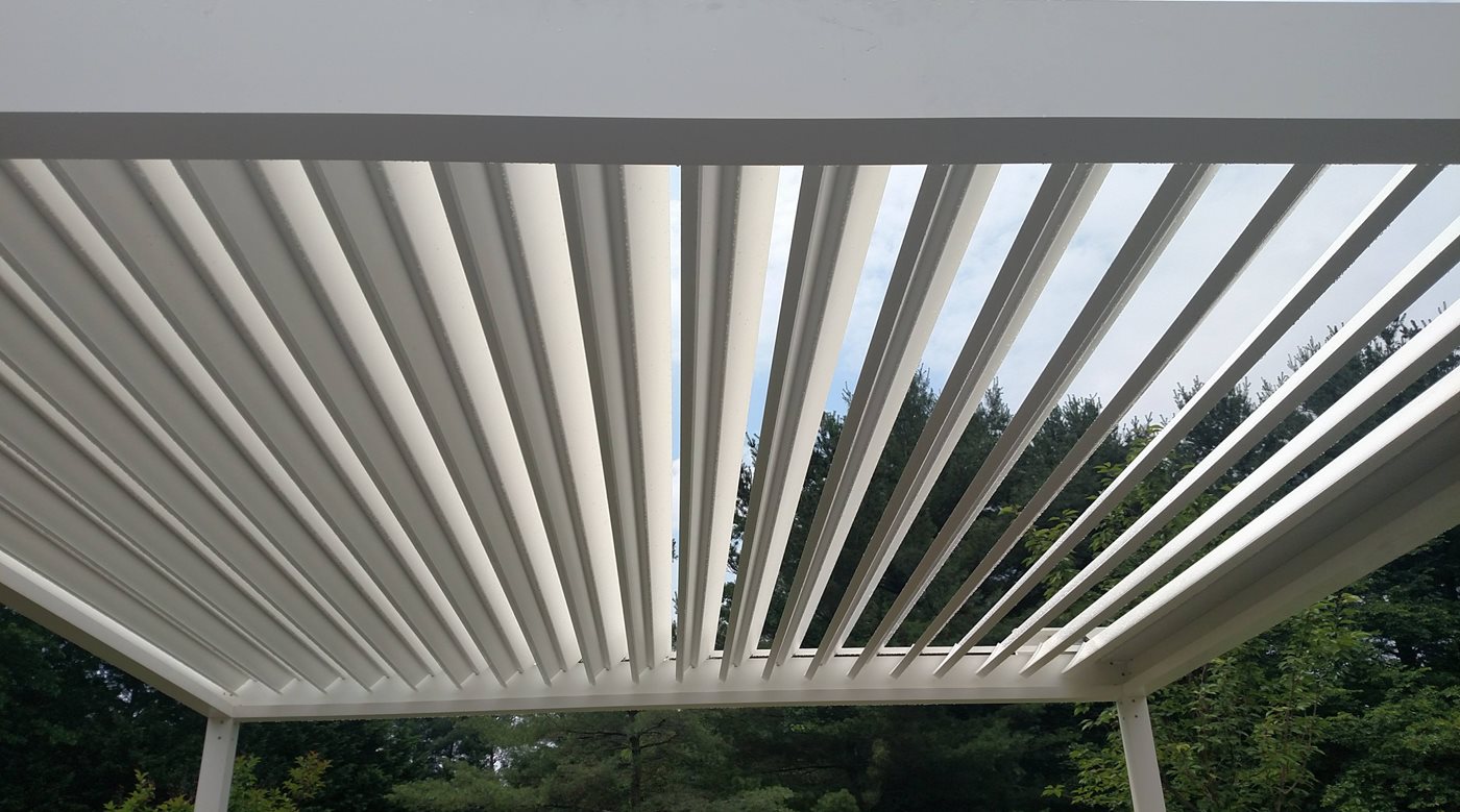 The Alba – "dawn" in Italian – seamlessly combines innovation and practicality in the form of a motorized, louvered pergola. Its aluminum blades can rotate up to 150° via a remote, providing unparalleled control over incoming light and ventilation. In the heat of summer afternoons, the rotated blades deflect the sun upward, creating a shaded retreat with a refreshing airflow.