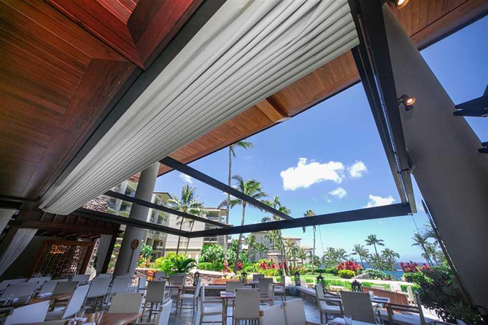 When you visit the Cane and Canoe restaurant in the Montage Hotel at Kapalua Resort in Maui, one of the first things you’ll notice, besides the ocean view, is the outdoor dining space with a levitating canopy roof—an award-winning installation. Corradi USA made this retractable shade system possible, allowing diners to enjoy their meals while protected from the sun, wind, and rain.